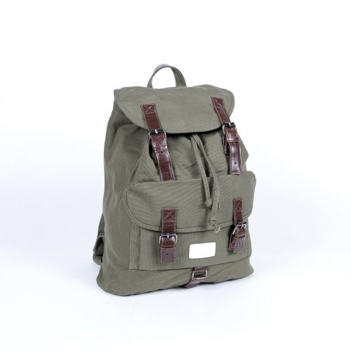 Trim - Vegan Leather Material - Canvas 13"W x 16"H x 6"D Padded Laptop Pocket Color - Army Green