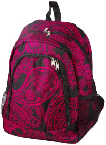 cute backpacks for college Hot Pink Fuchsia and Black Paisley School Backpack Bag Features.